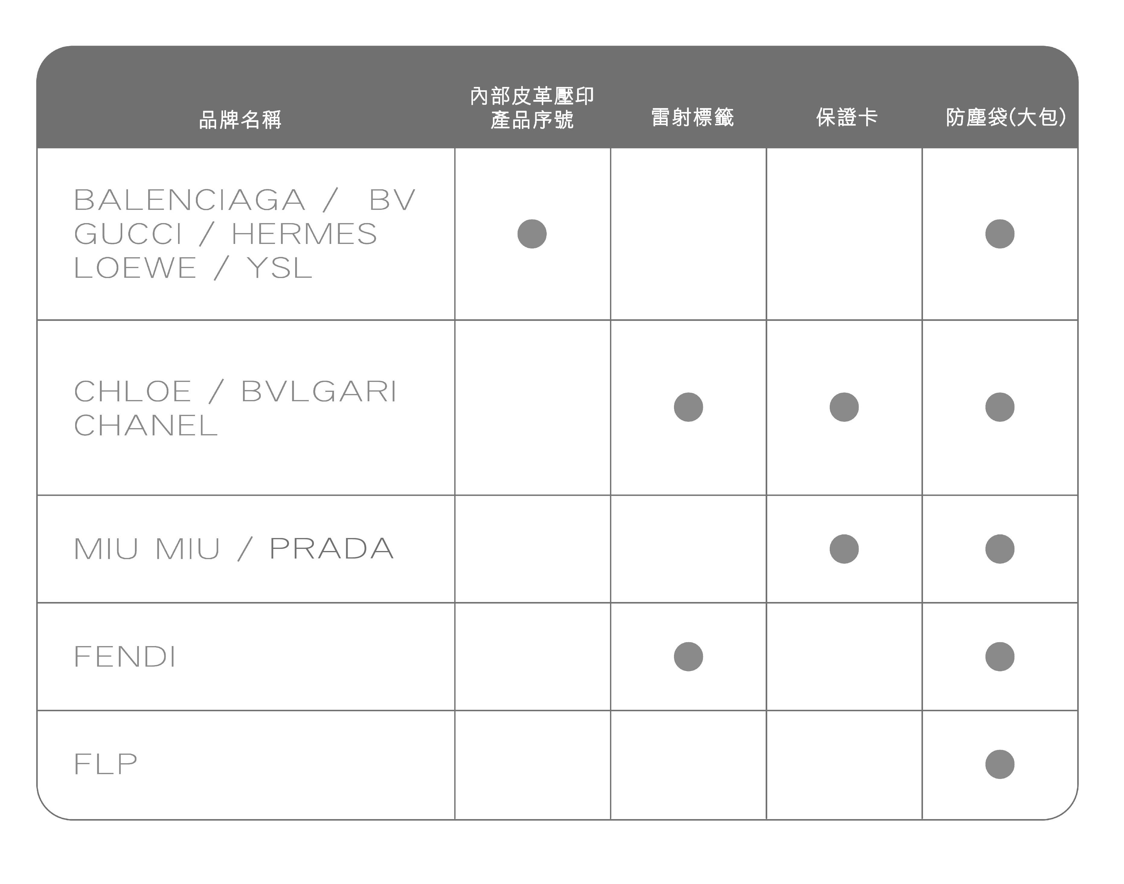 我想知道我買的皮件商品(不包含飾品、鞋類)是否為正品,會有什麼配件呢?