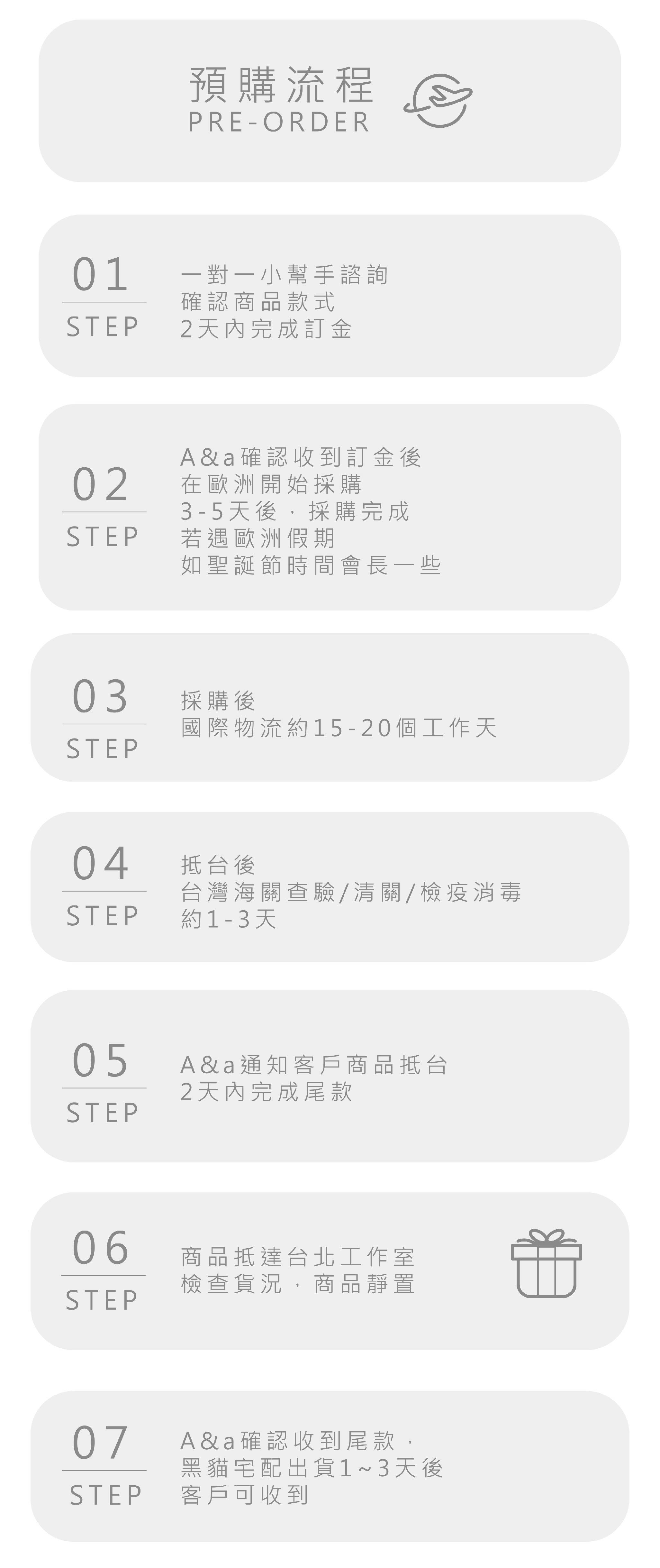 A&a創立於2009年,已經於歐洲耕耘超過十多年時間,良好互動與信用讓A&a可以得知第一手折扣消息,搶先買到VVIP優先的商品。A&a非常重視與客人的信任關係,好口碑也讓許多人推薦親友來購買,可以放心交給A&a,帶領大家一起買遍歐洲。